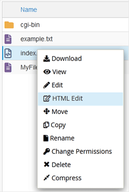 Você pode usar o gerenciador de arquivos embutido do cPanel para editar arquivos em seu site.