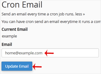 Você pode ativar as notificações do cronjob ou atualizar o endereço de e-mail de um cronjob no cPanel.