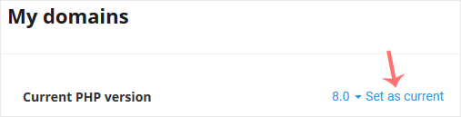 3 . À direita da versão atual do PHP , clique no menu suspenso e escolha a versão que deseja usar.